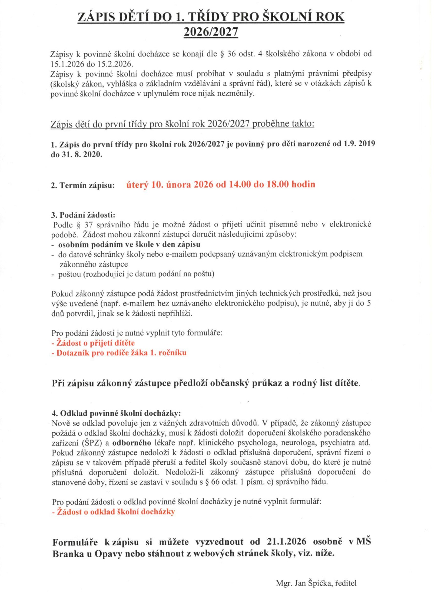 Informace k zápisu pro školní rok 2025/2026