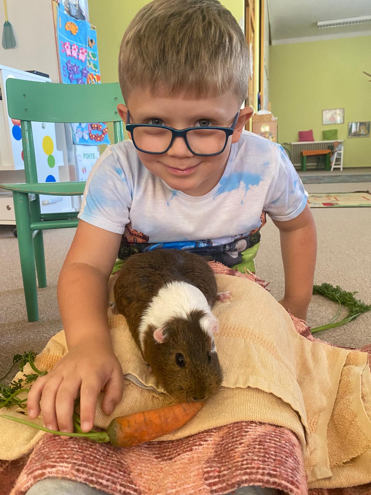 Dnes jsme měli ve školce milou návštěvu, přišla k nám paní s morčátky! Přinesla sebou morčata a povídala nám o tom, co mají ráda, co jí, kde bydlí a jak se o ně správně starat. Děti se dozvěděly, že morčátka ráda chroupou zeleninu a že si mezi sebou povídají pískáním. Každý si mohl morče pohladit a pochovat a z toho měly děti velkou radost.
