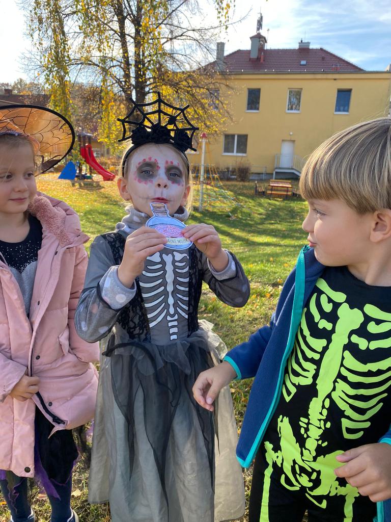 Naše školka se proměnila ve strašidelný zámek plný malých čarodějnic, duchů, kostlivců a dalších potvůrek. Děti přišly v úžasných kostýmech a celé dopoledne plnily zábavné úkoly, dělaly kouzelné pokusy, a dokonce překonávaly překážky jako opravdoví hrdinové v maskách. Ani na zahradě nezahálely, tam na ně čekaly další tajemné výzvy a úkoly pod širým nebem. A protože po strašení vyhládne i největším duchům, maminky napekly spousty dobrot, na kterých si dětí s chutí pochutnaly.
